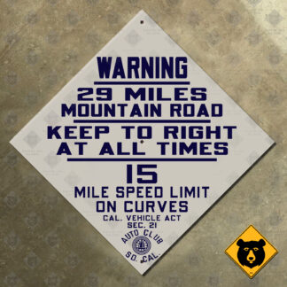 California (ACSC) Warning, 29 Miles Mountain Road sign