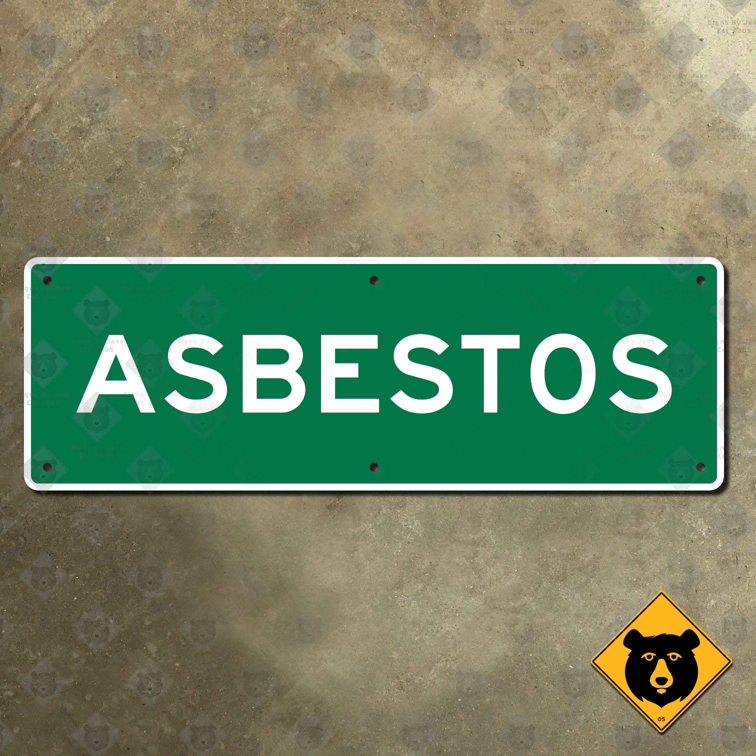 Our Asbestos sign is printed on heavy 14-gauge steel. It has a high-gloss, durable coating that allows it to be installed outdoors, even in snowy Québec. It is non-retroreflective, making it an excellent indoor display piece as well. We’ve included pre-drilled mounting holes to make installation convenient. It’s available in the following sizes: