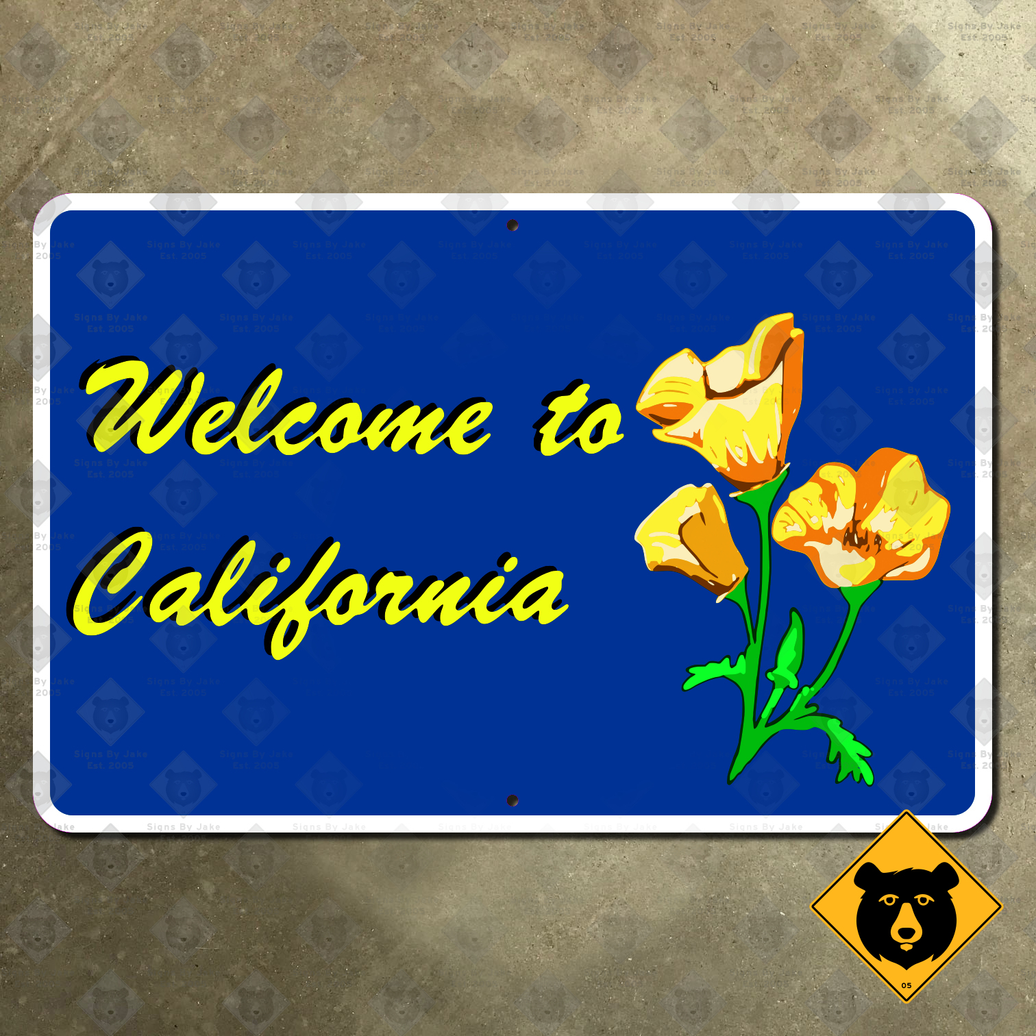 In 1984, the Olympics was scheduled to return to Los Angeles after a 52-year absence. At the time it was selected to host the games, California was using a plain, all-text welcome sign at the entrances to the state. Faced with the prospect of soon welcoming thousands of visitors from around the world, the state government soon set about installing a more visually-interesting replacement. The 1983 California poppy welcome sign is among the most iconic state welcome signs in the United States. It depicts the state flower alongside the text “Welcome to California” in a script font. The golden color of the poppy and text, along with the blue background of the sign, represent the state colors of California.