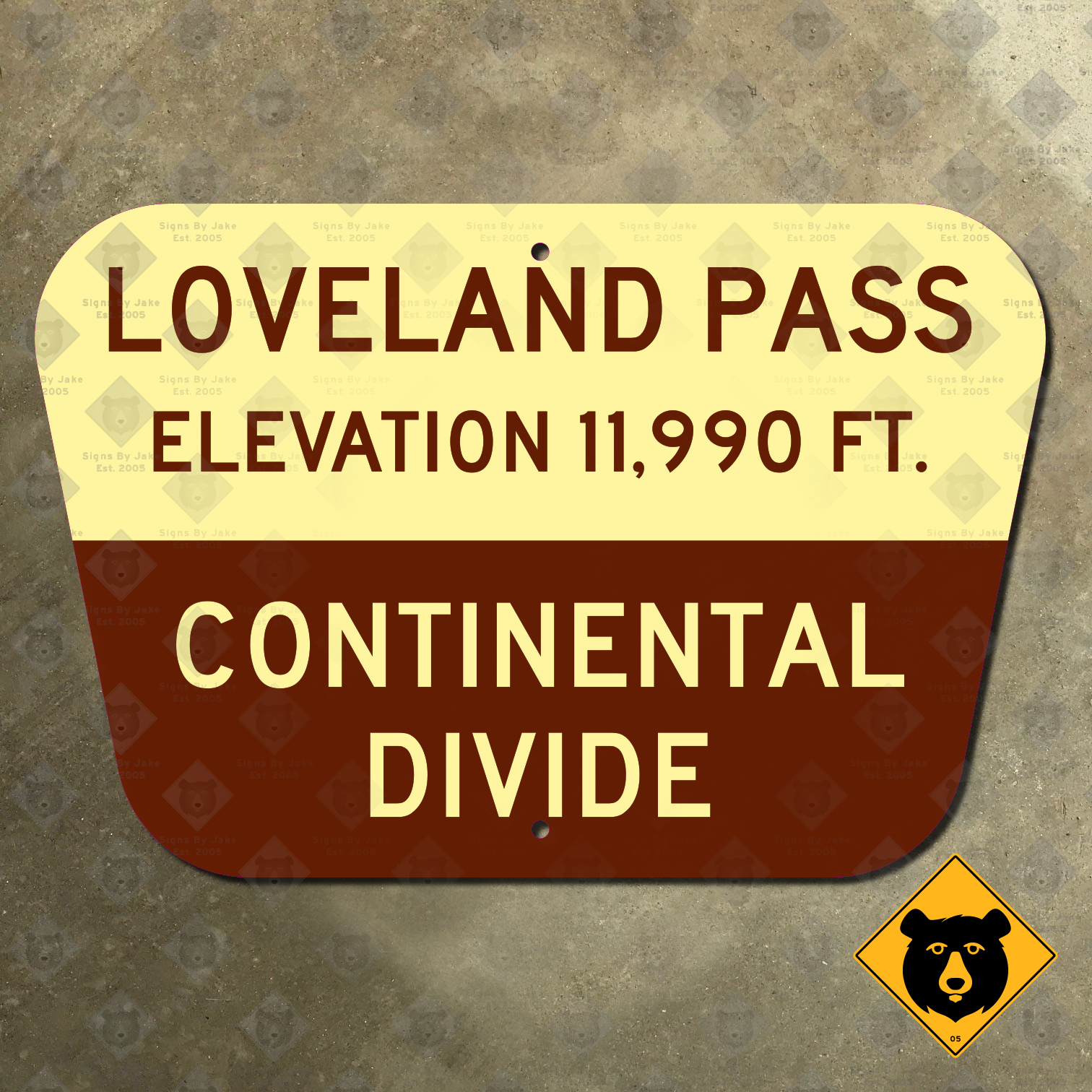 Our Loveland Pass Continental Divide marker is flat printed on heavy 14-gauge steel. We offer it in four sizes, from 15 in. × 10 in. all the way up to 45 in. × 30 in. Its non-reflective finish makes it a perfect display piece. Its glossy, weatherproof coating makes it suitable for display outdoors as well, even in the snowy mountains of Colorado. We’ve also included convenient mounting holes for easy installation. (Want a sign like this for another mountain pass? Or perhaps a different kind of sign altogether? Custom orders are our specialty! Just contact Jake to get started.)