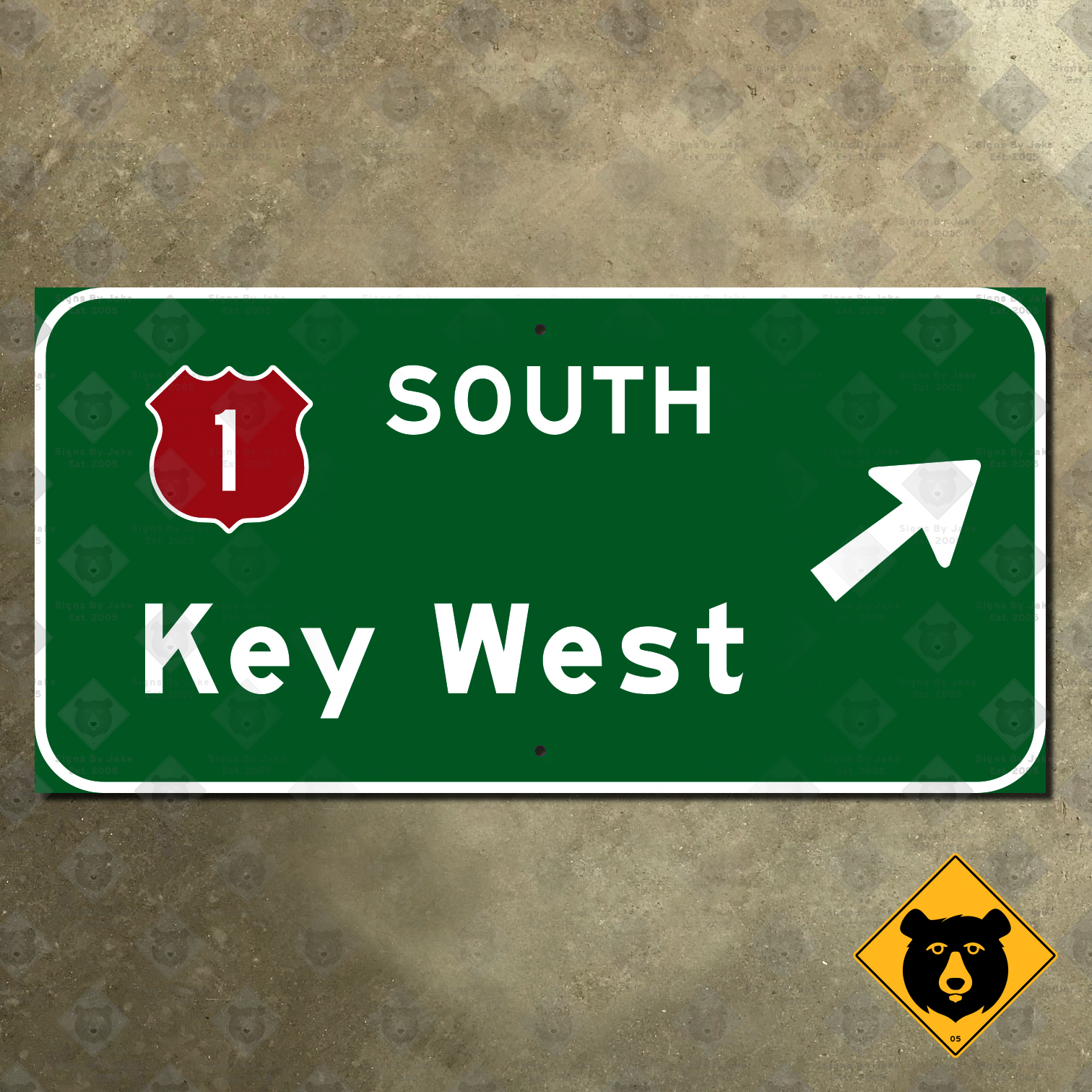 Our US-1 Key West sign is made according to the standards for exit signs found in the American Association of State Highway Officials’ 1961 Manual for Signing and Pavement Marking of the National System of Interstate and Defense Highways. These standards were among the first American standards ever developed for freeway exit signs. The US 1 shield is red, reflecting Florida’s practice for many years of color-coding US highway shields by route number. It’s a great throwback to the early days of the freeway era in south Florida.