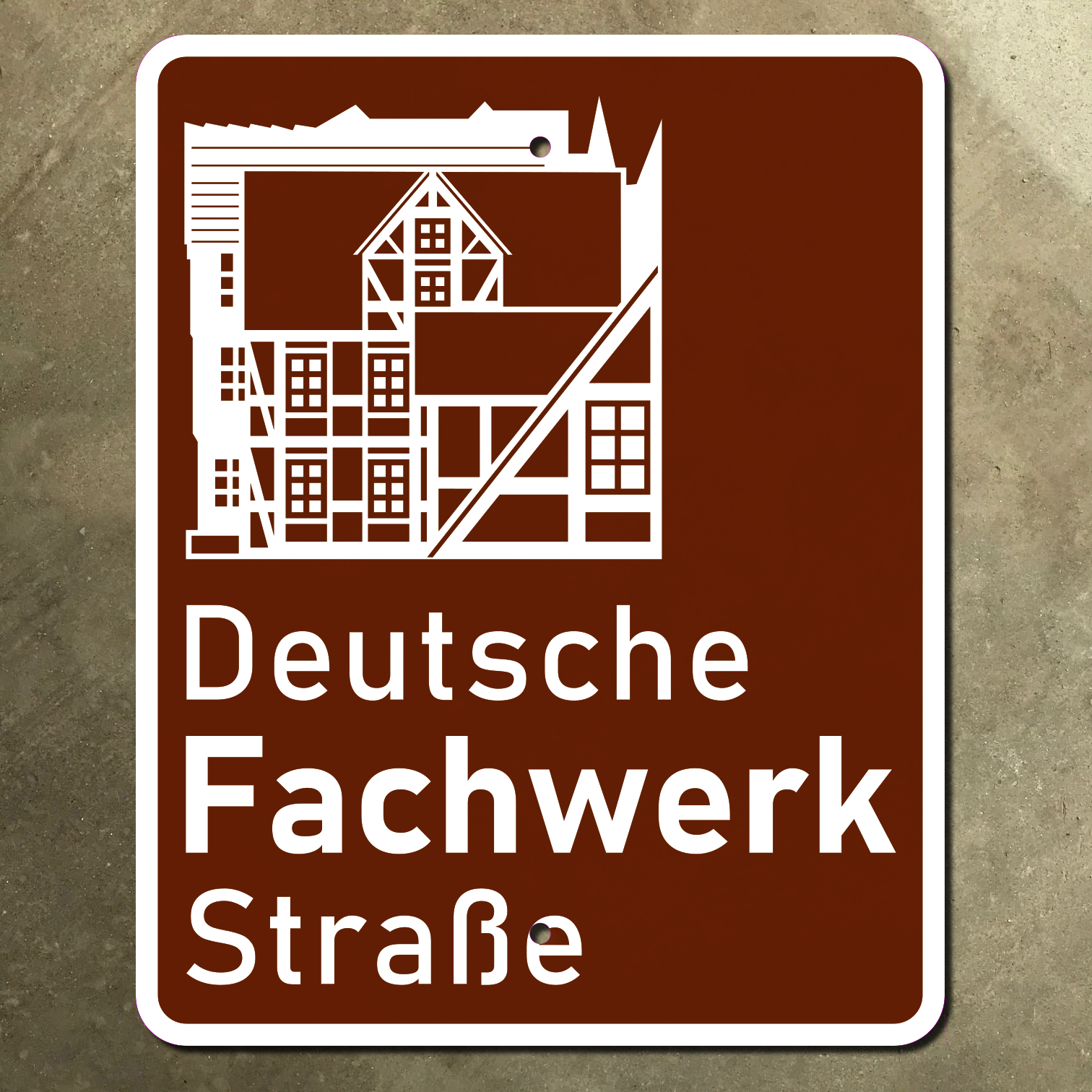 This Deutsche Fachwerkstraße sign is printed on heavy 14-gauge steel. It is a glossy, non-reflective sign, and can be installed indoors or outdoors. We offer it in sizes ranging from 9.6 in. × 12 in. all the way up to 32 in. × 40 in. Every size includes two mounting holes for your convenience. (Looking for this sign in a different size? Or perhaps another sign, from Germany or elsewhere in the world? We love custom orders—please inquire!)