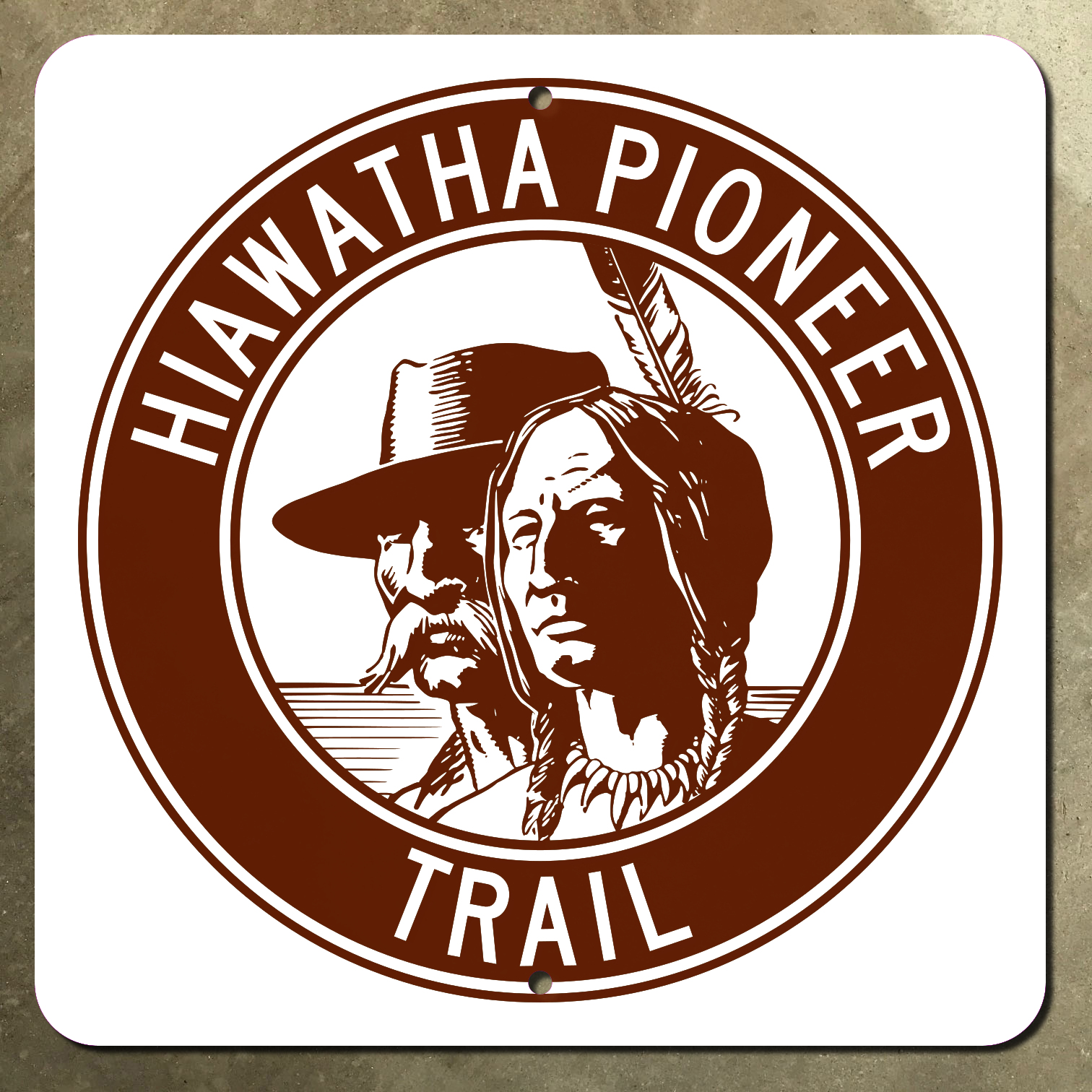 Our Hiawatha Pioneer Trail sign is flat printed on heavy 14-gauge steel. You can choose between four sizes: 12, 16, 24, and 36 inches square. Its durable non-reflective finish will look great, indoors or outdoors, for years to come. (Looking for a version in a different size? Or perhaps a sign for a tourism route elsewhere in the world? Please ask Jake, as he can certainly make one!)