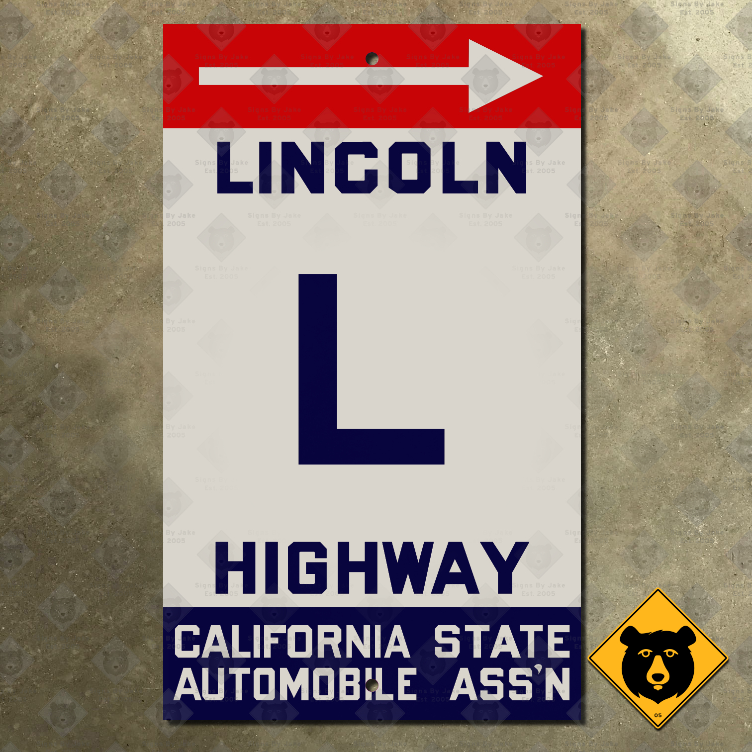 In its heyday, the Lincoln Highway bore distinctive red-white-and-blue signs, with a large letter L. The California State Automobile Association (CSAA) was one many organizations to post such signs. Despite their name, the CSAA also posted signs in Nevada, and even as far east as Utah, expending many resources to help wayfarers find the correct route across some pretty forbidding landscapes. These signs have gradually disappeared from service over the years; it is unlikely that there are any left not in the hands of private collectors.