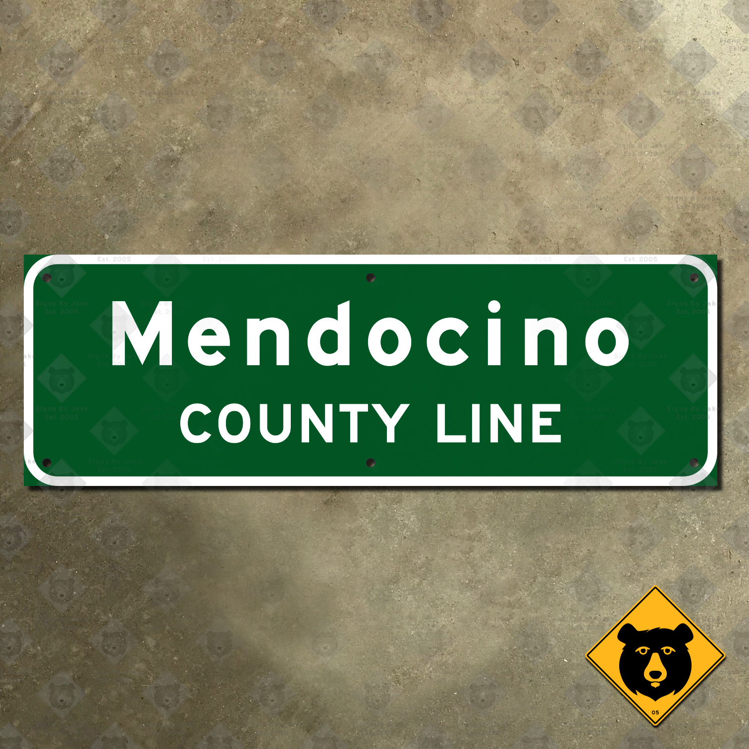 Our Mendocino County Line sign is a recreation of the signs that appear at the entrances to this county along California’s state highways. We’ve made it precisely according to the California Division of Highways specification G10R, revision dated March 4, 1960. No other sign on the market will look this good, as it’s impossible to get closer to the real thing than that!