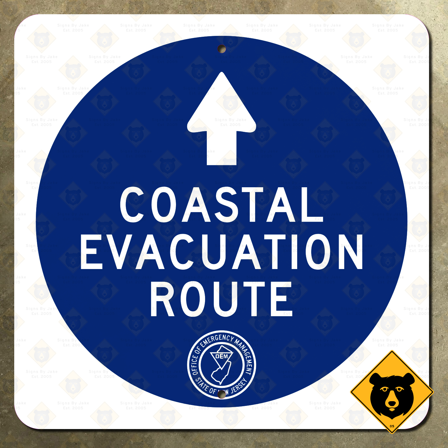 Living near the Atlantic coast can be quite pleasant, but at times very dangerous, as well. Strong storms occasionally come in off of the sea and threaten the Jersey Shore. Particularly strong tropical storms and hurricanes can even make it necessary to evacuate the coast. In preparation for these emergency situations, the New Jersey Office of Emergency Management defines Coastal Evacuation Routes for residents to get to safety. These routes are publicly posted with distinct white and blue markers.