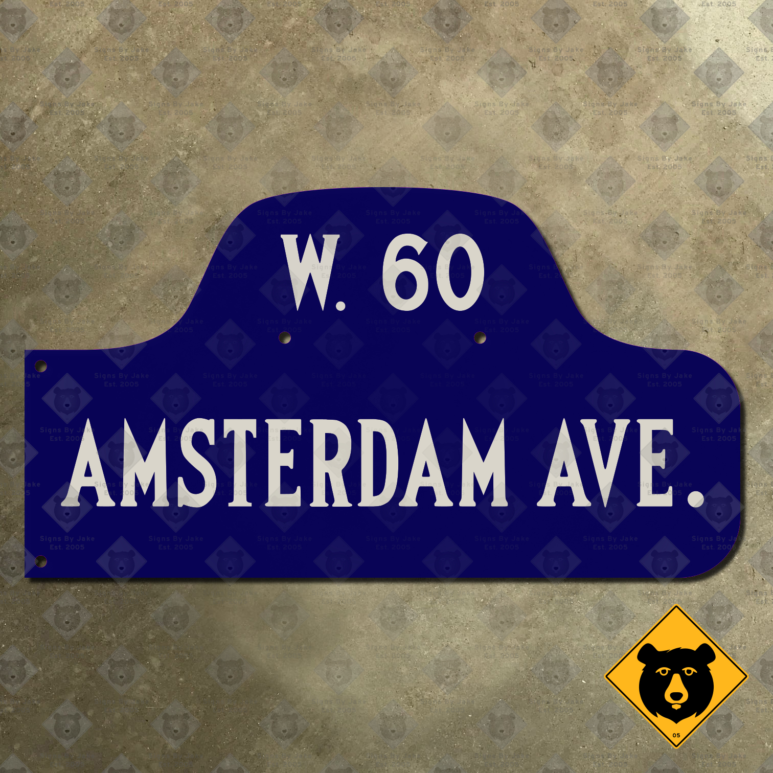 You haven’t been able to find a classic humpback street sign on Amsterdam Avenue for many decades. That’s why we recreated the humpback sign that appeared at the corner of Amsterdam Avenue and W. 60th Street for your enjoyment. Using photographs of actual surviving signs, we’ve precisely recreated the font and layout used on the old humpback signs. Original humpback signs like these do circulate on the collector’s market, where they inevitably cost a small fortune. Even so, you have to be pretty lucky to run across one for the exact intersection you’re looking for. Save money and eliminate the element of chance by choosing one of our humpback sign replicas.
