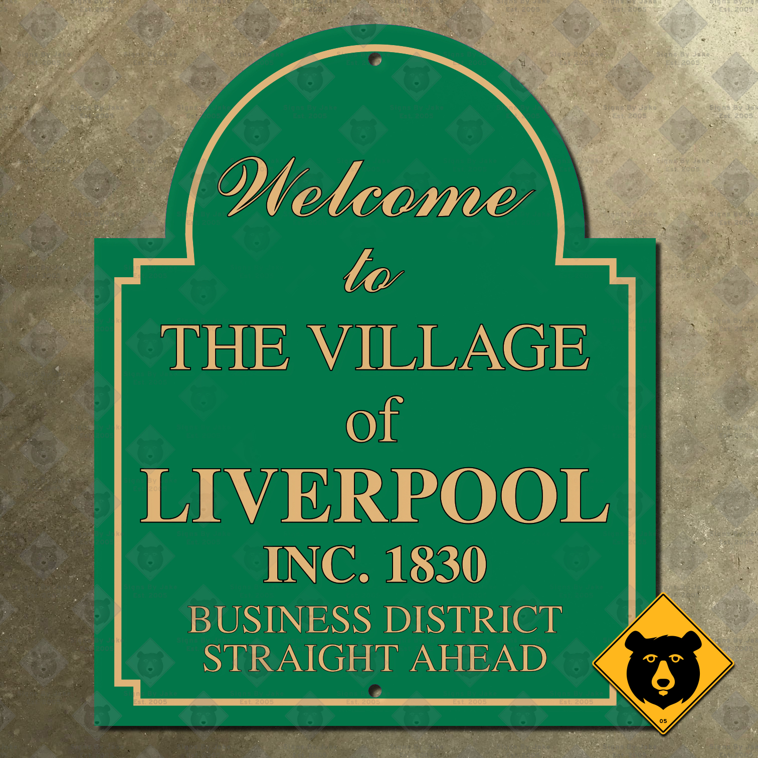 Our Welcome to the Village of Liverpool sign is a precise replica of the signs that appear at the road entrances to the village. We’ve used photographs of the original sign, as well as the exact fonts used to make the original, to produce a sign that is as close of a match as possible. It makes a great spark of upstate New York charm to liven up any space, indoors or out!