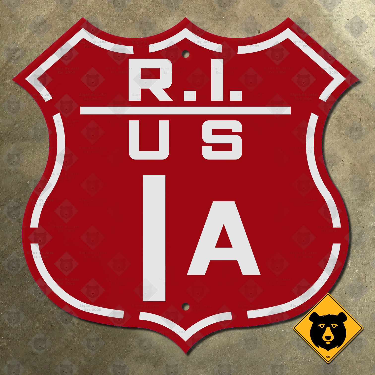 Our Rhode Island US Route 1A sign is flat-printed on heavy 14-gauge steel. It’s durable enough for both indoor and outdoor display, for years to come. We’ve made it available in the original size: 16½ inches by 16 inches. We’ve also rescaled it down to a smaller 12-inch-tall display size, as well as the larger 24 and 36 inch versions that some states used in certain contexts. All sizes include two convenient mounting holes. (Need a sign with a different number/color combination, or in a size not listed here? Place a custom order today by contacting Jake!)