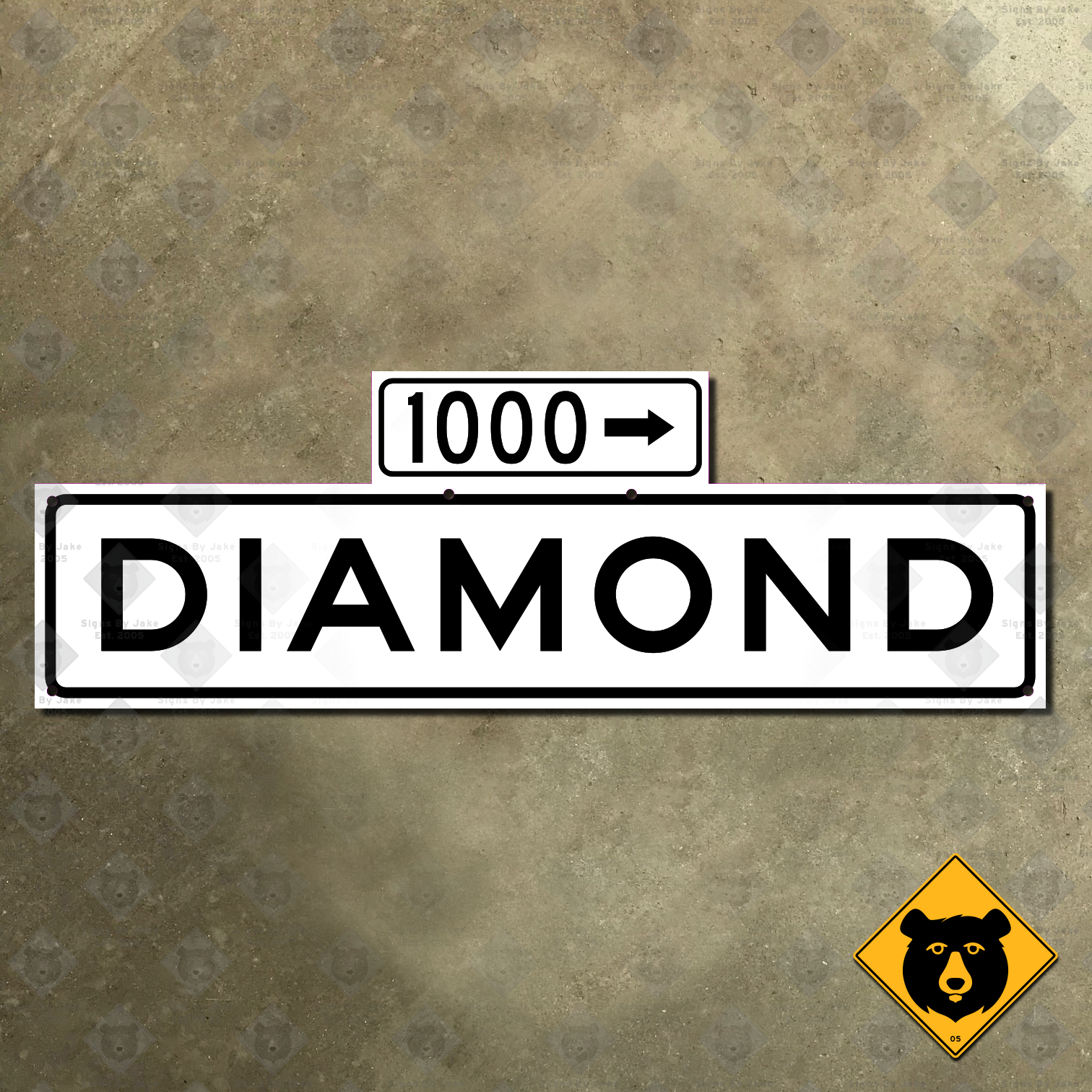 Celebrate this iconic piece of San Francisco’s urban fabric with our Diamond Street sign, a faithful recreation of the classic street signs seen throughout San Francisco from 1965 to 2009. Designed to match the original city standards that defined San Francisco streets for decades, our Diamond Street sign features all-caps black lettering on a clean white background, using the modern FHWA Series highway sign fonts. The block number 1000 appears above the street name, marking the intersection with 25th Street.