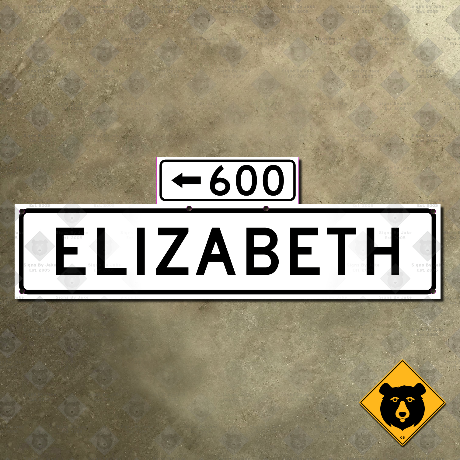 Want this sign in another size? Or with a different block number? Or are you buying for someone who spells her name “Elisabeth”? We’d be happy to customize this sign any way you like! We can even make these signs in the newer 2009 style (with mixed-case text) or one of the styles dating back to 1946 or even earlier. Placing a custom order is easy! Just contact Jake to get started.