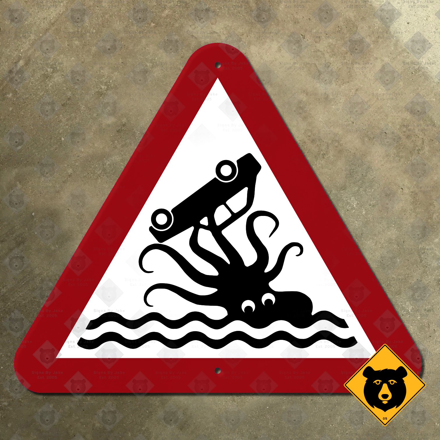 Our octopus/kraken warning sign lets you show your respect for the creatures of the deep, that they might allow you to pass by the shore unharmed. Using photographs of the original sign, we’ve made a precise replica that makes an excellent addition to any place where you might need to warn someone of a tentacle attack.