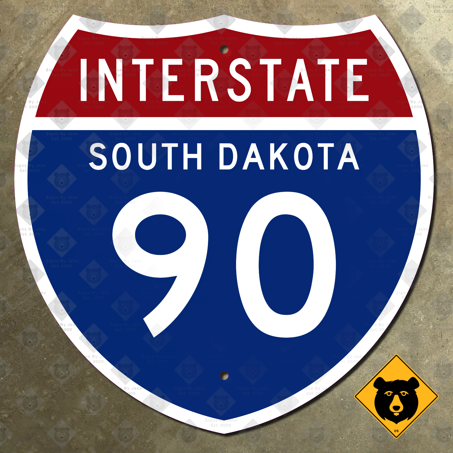 Our South Dakota Interstate 90 marker is flat printed on heavy 14-gauge steel. It comes in sizes from 12 inches square all the way up to 36 inches square. No matter the size, we include two convenient mounting holes. Our Interstate 90 shield is non-reflective, making it perfect for everyday display, indoors or outdoors. (Looking for a sign for a different Interstate or state? Or perhaps a size not listed here? Or an entirely different sign? Please ask, as custom orders are our specialty!)