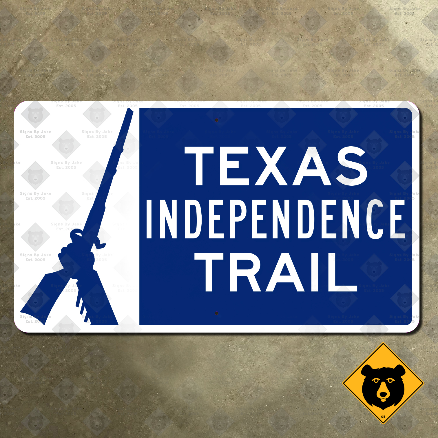 The Texas Independence Trail is located in the southeastern part of the state. It loops around the region between San Antonio and Austin. Along the route, you’ll find special blue-and-white signs with the image of a pioneer’s arm hoisting a rifle. Our replica of these signs is made according to the exact specifications used by the Texas Department of Transportation and the Historical Commission to create the original signs. The fonts used for the text, the icon, and the sizes and layout of both are a precise duplicate of the signs you’ll see out on the road. Our replicas are just like having the real thing—but without running the risk of drawing the ire of the Texas Rangers!