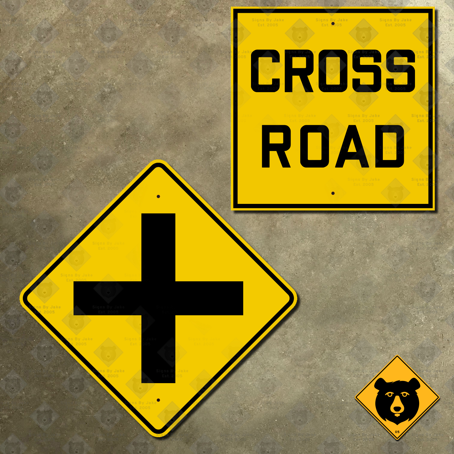 Our Cross Road warning sign is flat printed on heavy 14-gauge steel, right here in the good old USA. Its high-gloss, non-reflective finish will protect it from the elements when installed outdoors. Mounting holes are included to make installation easy. Choose either the 1927 or 1948 versions, as well as from the following sizes (measured along the edges):