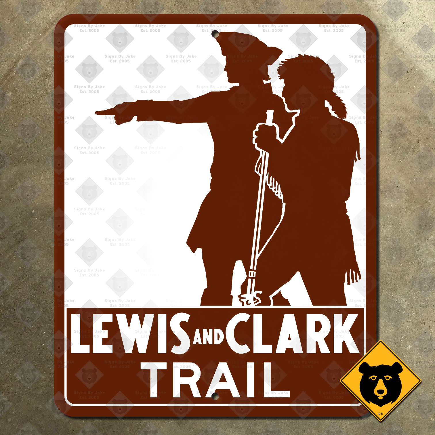 Our Lewis and Clark National Historic Trail sign is a precise replica of those that have marked the route since 1978. It shows the silhouettes of the two explorers in brown on a white background. Show your appreciation for American history and the rugged landscapes Lewis and Clark traveled with this handsome display piece.