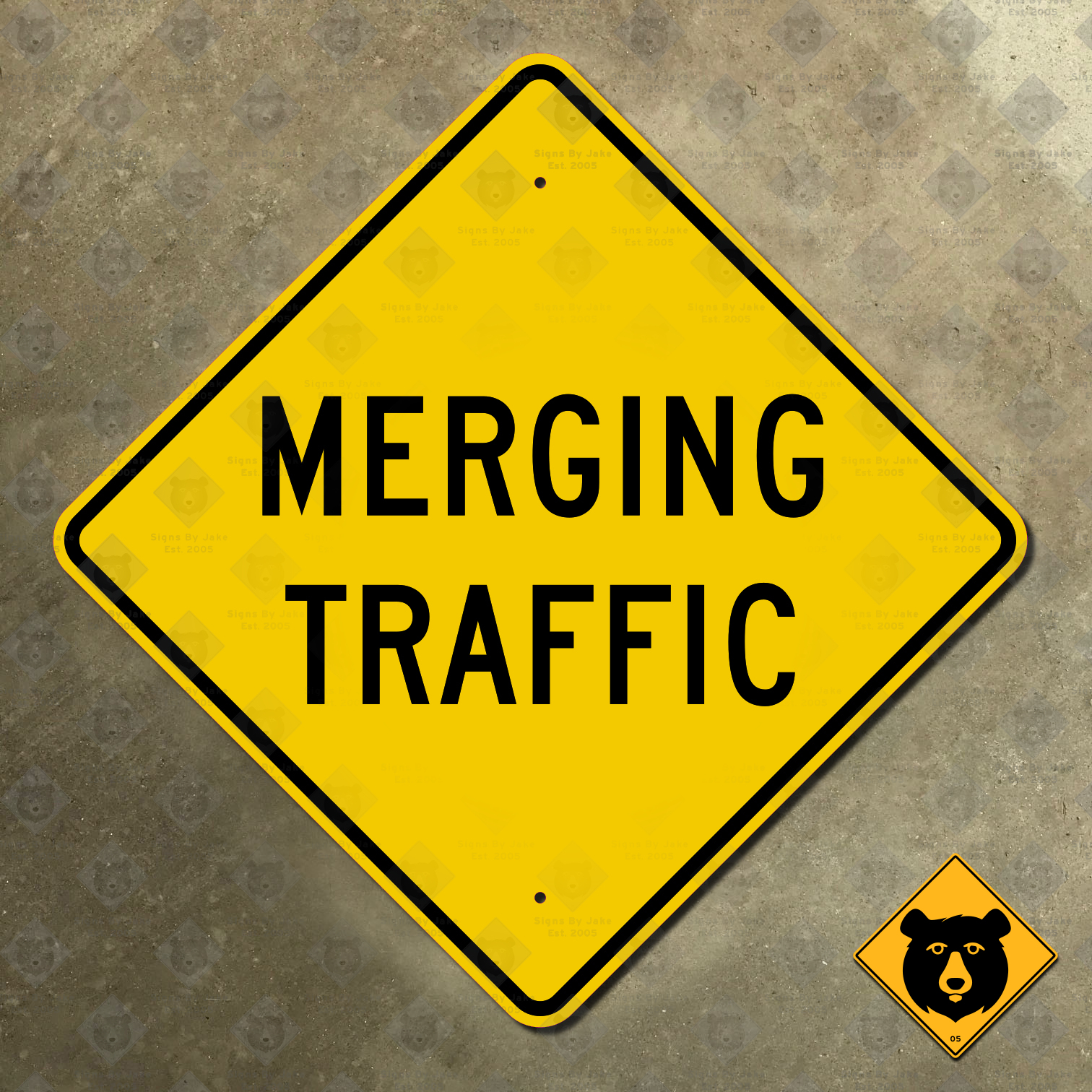 Our replica Merging Traffic sign is made using the actual W4-1 sign dimensions found in the 1961 MUTCD. Every detail is just like the original signs were, in terms of the fonts used and placement on the sign. Step back in time the early days of the Interstate System with our faithful replica of this classic warning sign!