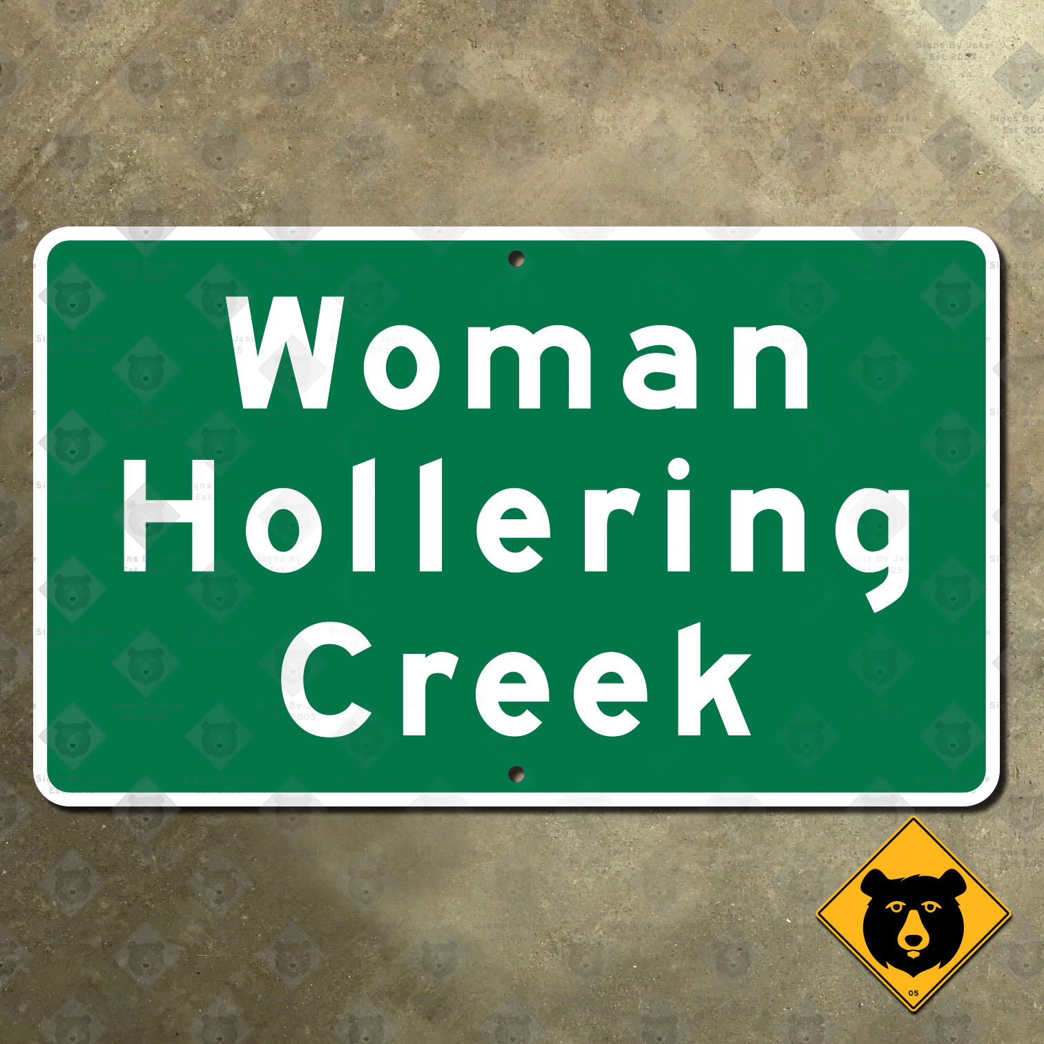 Woman Hollering Creek is located between Seguin and San Antonio, Texas. Interstate 10, among other roads, crosses it. Because of the attention the unusual name attracts, the signs for this creek are no doubt kept under the watchful eye of the Texas Rangers. Signs along Interstate 10 are also really large. That makes getting a genuine Woman Hollering Creek sign onto your wall fraught with legal and logistical peril.